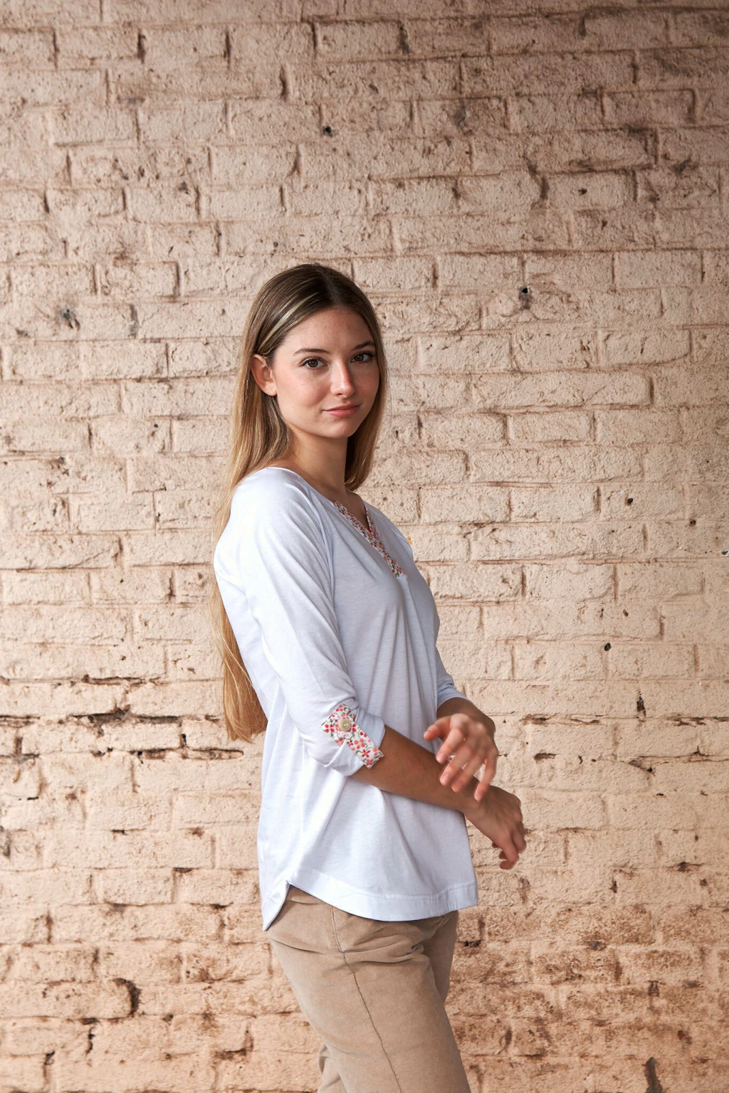 Remerón jersey alg con lycra delantero bordado, tajos laterales